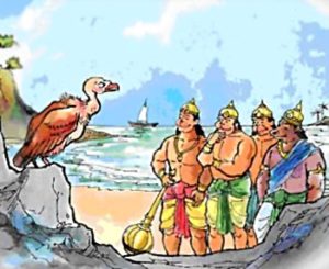 Monkeys went all the way to Sea shore and met Smappati there, who told them that Ravan has taken Seeta to Lanka.