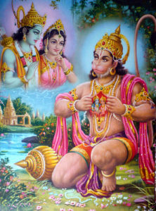 When Lord Hanumanji asked him the reason behind his sadness, he told that the Ramayana written by Shri Hanumanji was far better than his version of Ramayan, So no one would read his Ramayan. Hanumanji disposed his Ramayan in sea and thus ended the predicament of Valmiki ji. Valmikiji was greatly moved by his gesture and said that he could not do justice with Shri Hanumnaji’s greatness in his Ramayana and he would have to incarnate again to write again to extol the virtues if Shri Hanumanji.