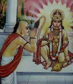 Shri Hanumanji is alwsy immersed in the devotion of Shri Ram and has reached the level, where there remains no difference between Shri Ram and Hanuman. Bhagwan(God) and Bhakt(Devotee) become one principle only.