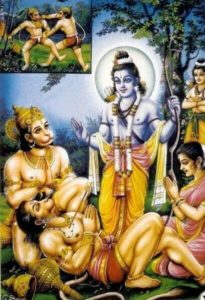 Explanation: Shri Ramji was in uncontrollable angst and grief when Lakshman was unconscious but he became supremely pleased with Hanumanji when he saved Laksmanji’s life by bringing Sanjeevani booti(herb). Shri Ramji’s joy knew no bounds and he told Shri Hanuman ” You are as dear to me as my brother Bharata”
