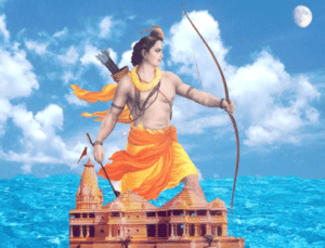 Thereafter Lord Shri Ram befriended Sugreev by killing Bali and thus saving Sugreev’s life and making him King of Kishkindha again. Lord Hanuman went in search of Mata Sita ,flying over the ocean and found Mata Sita in Lanka. Shri Hanuman ji returned from there and told the news to Lord Shri Ram. Lord Shri ram took Sugreev and his army and proceeded towards Lanka. When Shri Ram ji reached the sea shore he found that the sea is full of crocodiles, reptiles, big fishes and all kinds of dangerous animals. It would be difficult to cross the ocean. Then he asked his brother Lakshman,”How do we cross this big sea ? And if how would we achieve victory if cant;t cross this ocean?